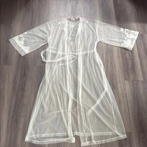 Experience the luxurious feel of this Victoria's Secret cream sheer robe, crafted from delicate, lig... Show more