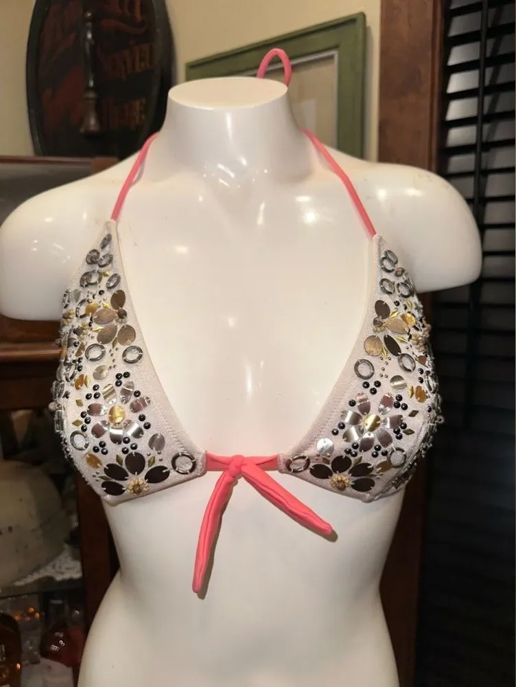EUC Victoria’s Secret Embellished Retro Floral Halter Swim Bikini Top L Pink Size L - $16 - From Francesca