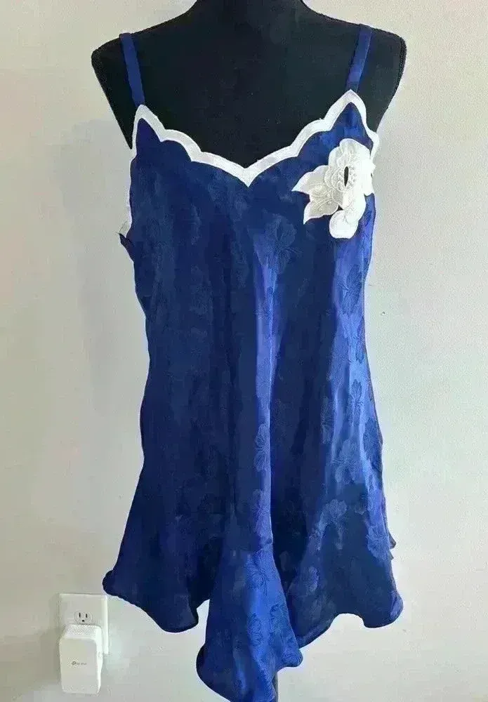 90's Y2k vintage Victoria’s Secret Victoria's Secret Gold Label Blue Floral with White Floral Appliq... Show more