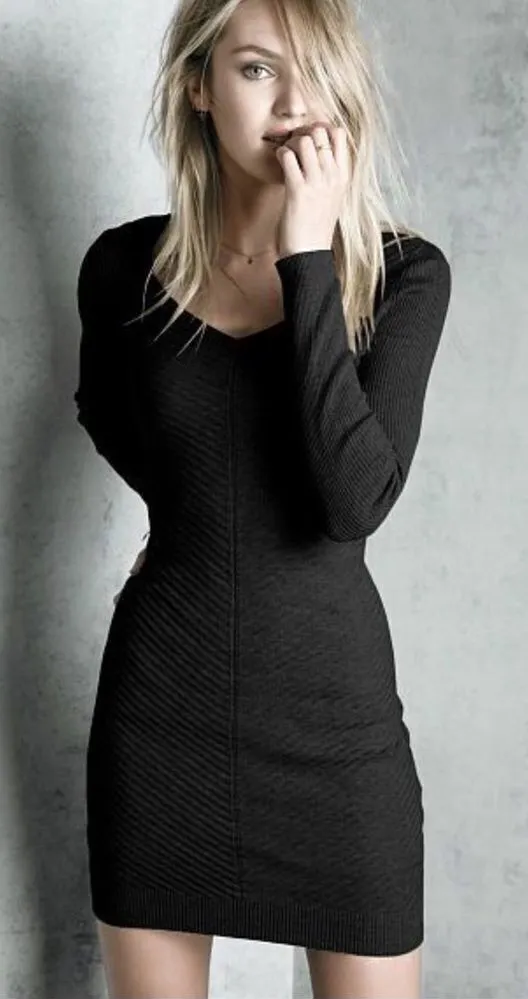 ✨ Fresh ‘Fits HP 1-2-2021✨ VICTORIA SECRET Body con V-Neck Sweater dress Knit Cotton Sweater Dress... Show more