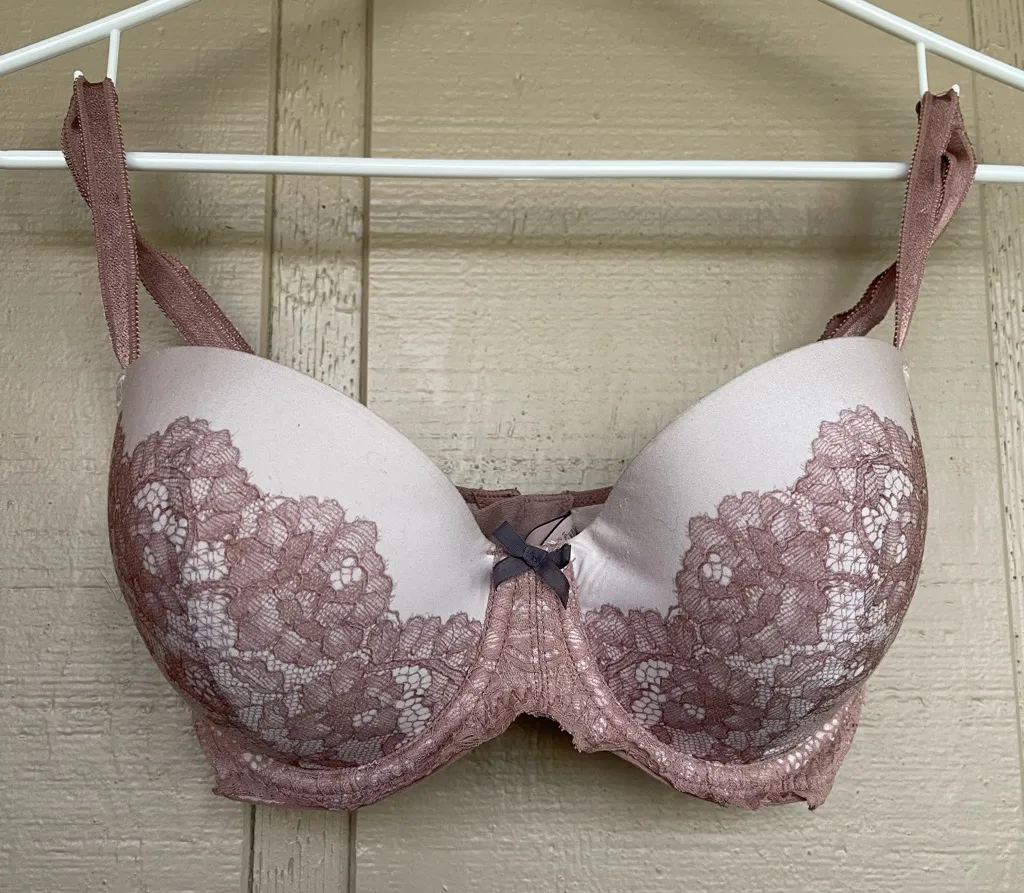 Dream Angels lined demi with elegant lace trimmed underwire bra featuring a beautiful mauve and cre... Show more