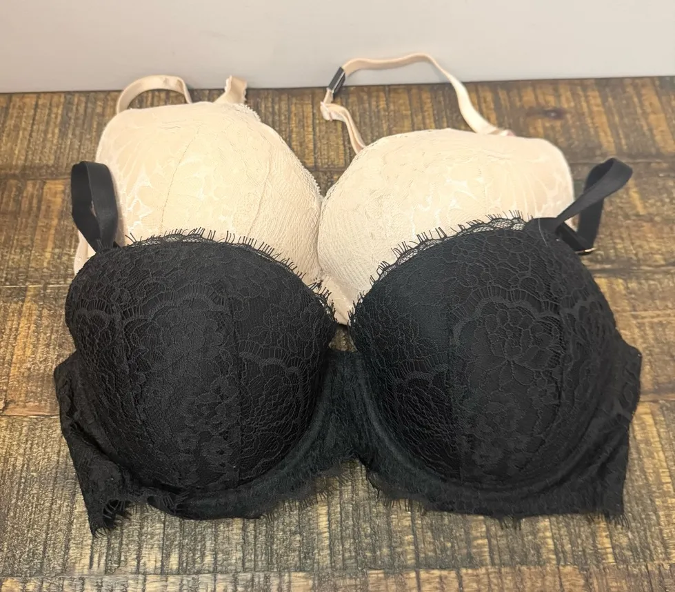 2 BRAND NEW bras from VS Both still have tags Black is a dream angels lined Demi and nude is a push... Show more