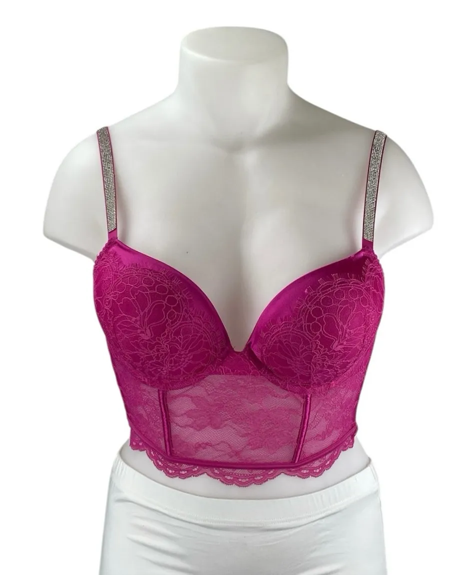 NEW Victoria Secret Bombshell Pink Floral Lace Adjustable Push Up Bralette Bra Top Size 36C Size: 3... Show more