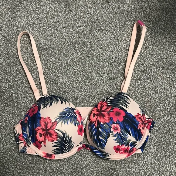 NWT Pink Victoria’s Secret Light Pink Tropical Hibiscus Monstera Wear Everywhere Super Push Up Bra 3... Show more