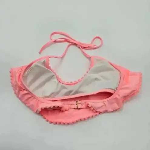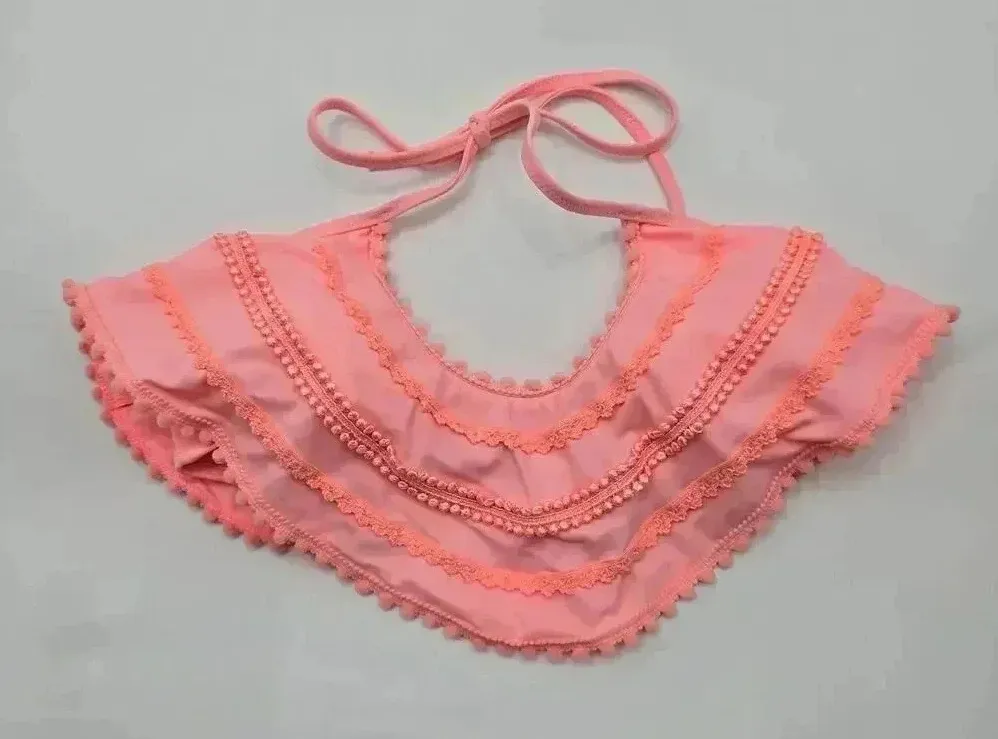 This bikini top is padded, tie back behind the neck and hook back, lace ball details SKU: 00257