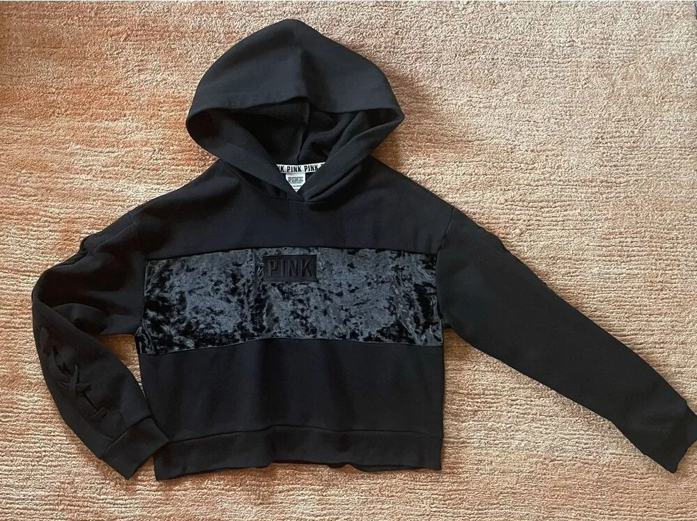 This Victoria's Secret Pink hoodie is a cropped style with a crew neckline and long sleeves. It feat... Show more