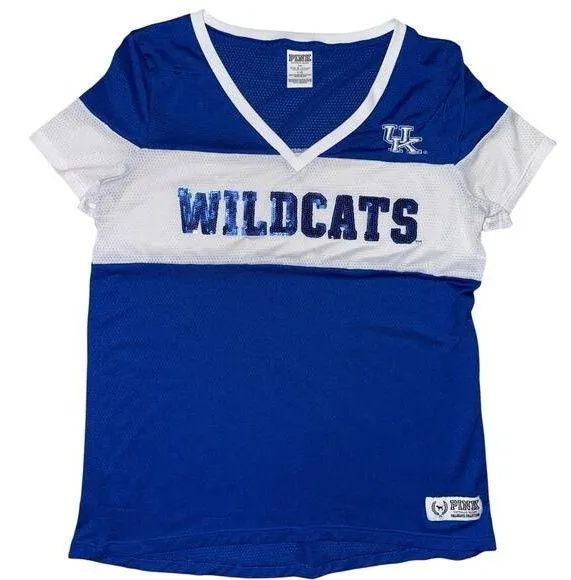 VICTORIA'S SECRET PINK KENTUCKY WILDCATS UK BLING VNECK JERSEY TEE LARGE BLUE - $12 - From Haylie