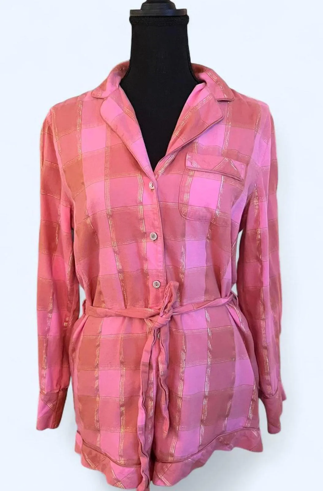 Victoria's Secret Pink Plaid Pajama Romper with gold accents Size XS Brand new without tags #glamo... Show more