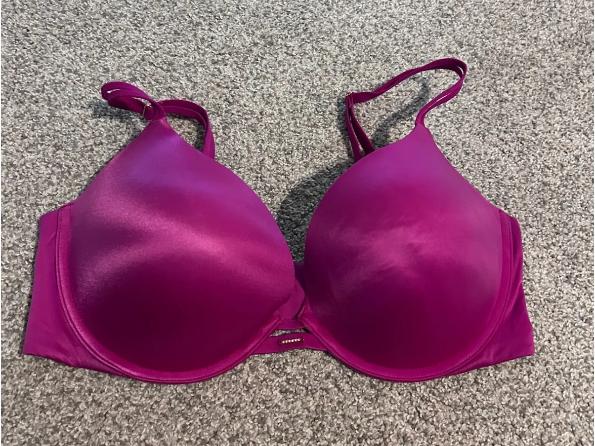 Radiate confidence in this stunning Victoria's Secret satin bra. The vibrant pink hue and smooth sat... Show more
