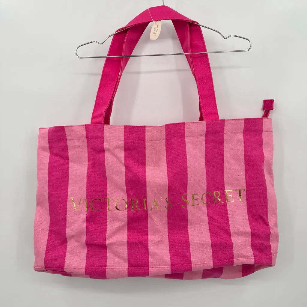 Victoria's Secret light and hot pink Striped extra Large Tote with Accessory Bag that clips inside.... Show more