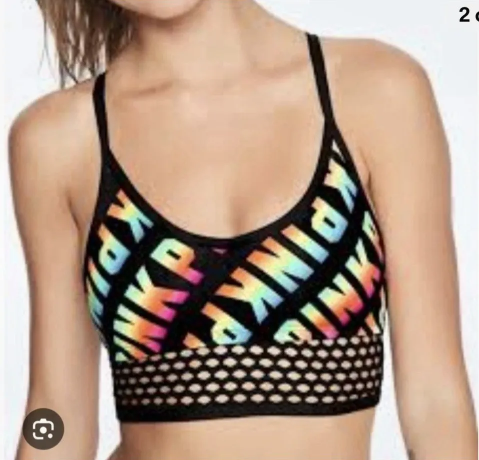 Victoria's Secret PINK Ultimate Wireless Sports Bra Mesh Band Spellout Sz Medium Black - $24 - From Bobbi