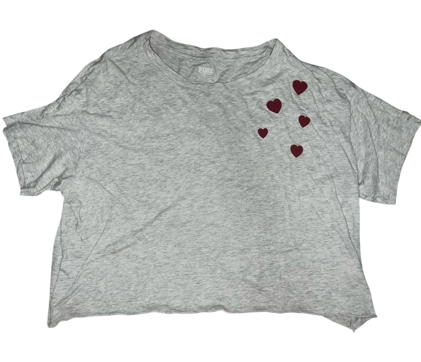 Victoria's Secret Pink Velvet Hearts Grey Gray Crop Top small WOMENS Valentine’s Day short sleeved l... Show more