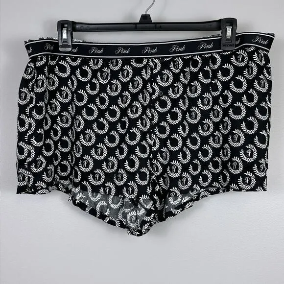 Listed is a pair of Victoria's Secret Women's PINK Tencel Boxy Pajama Shorts, black with laurel patt... Show more