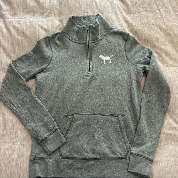 PINK Victoria’s Secret Gray Half Zip Logo Pullover Sweater Size XS - $50 New With Tags - From Jak