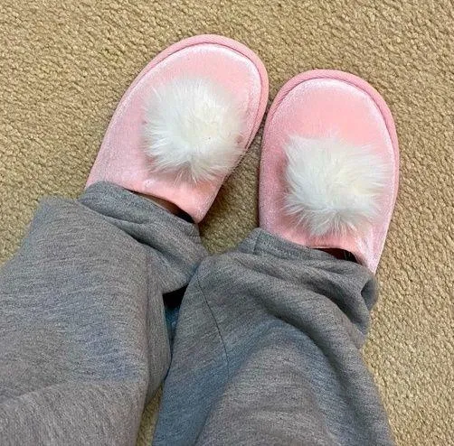 Pink velour with white pompom Size medium Only worn inside few times Message with questions and of... Show more