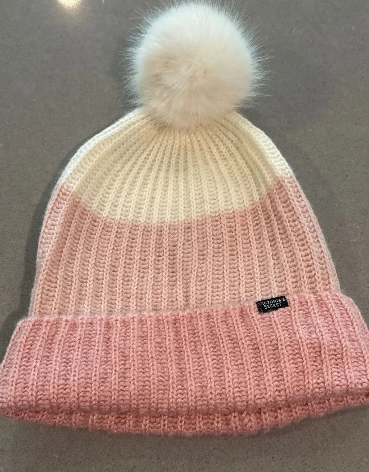 Chic winter accessory that combines warmth and style: a Victoria's Secret knit beanie, featuring a d... Show more