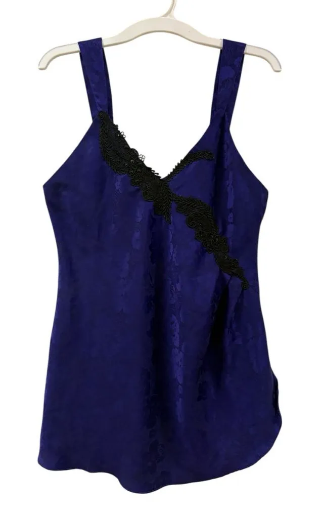 Chic purple slip on dress/chemise with elegant black lace accents. Ideal for a stylish outfit.