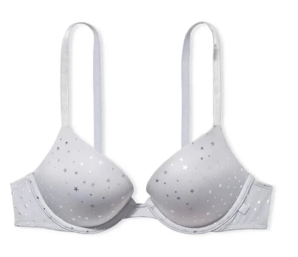 Victoria's Secret push-up bra in white with a subtle silver star print. This bra features adjustable... Show more