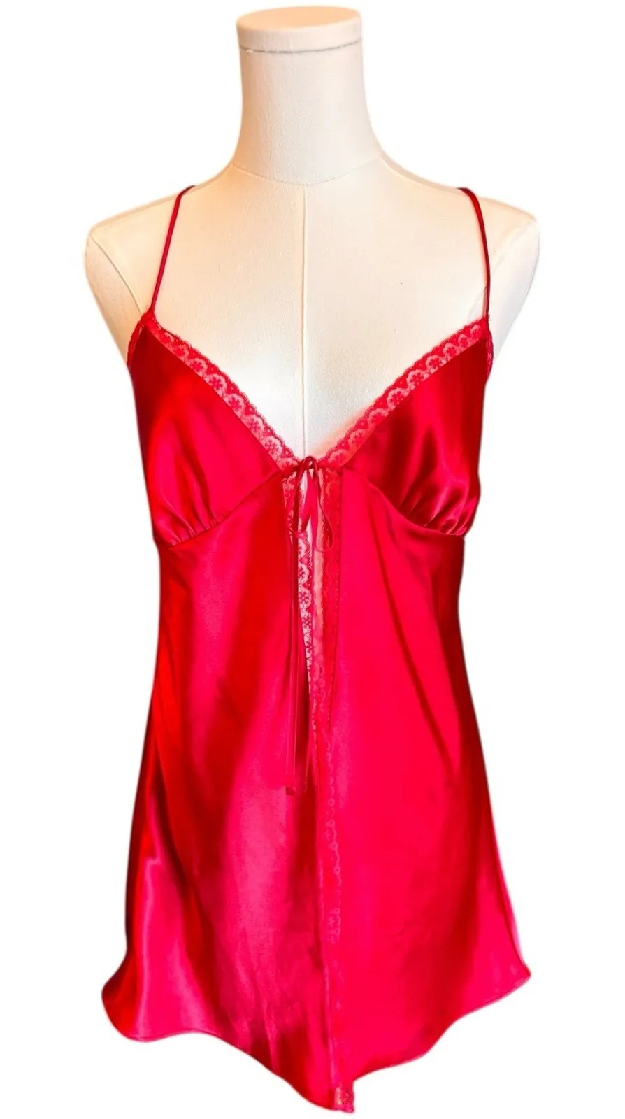 Victoria's Secret Red Babydoll Top Tie Front Small Satin Lace Romantic - $25 - From Tamara