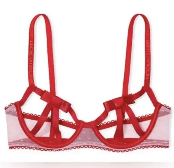 Victoria's Secret-Red Caged Cut-Out Open Underwire Bra/Lingerie W/Bow Large NWT Pink - $38 New With Tags - From Gina