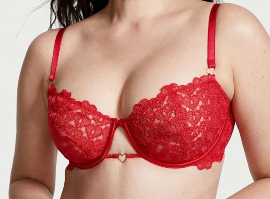 Experience elegance and support with this stunning red lace underwire bra. Perfect for adding a touc... Show more
