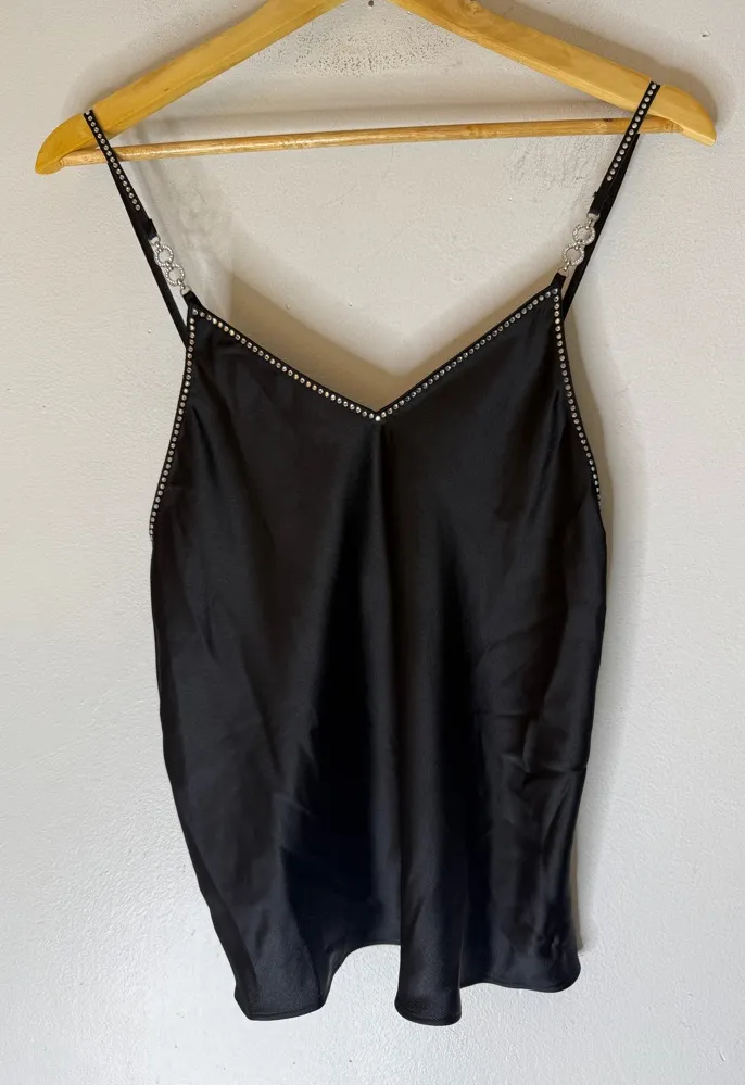 Victoria's Secret Satin Cami Black Rhinestones Shine‎ Straps XS - $28 - From Crystal