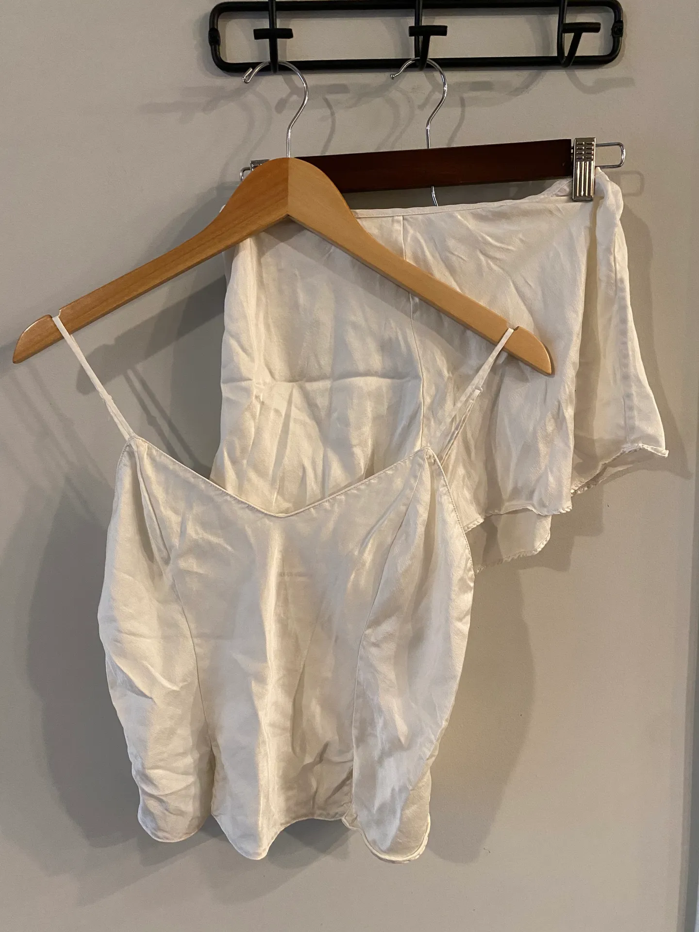 - Excellent condition - 100% silk - White - Adjustable straps - Size: M - elastic waist band - Vinta... Show more