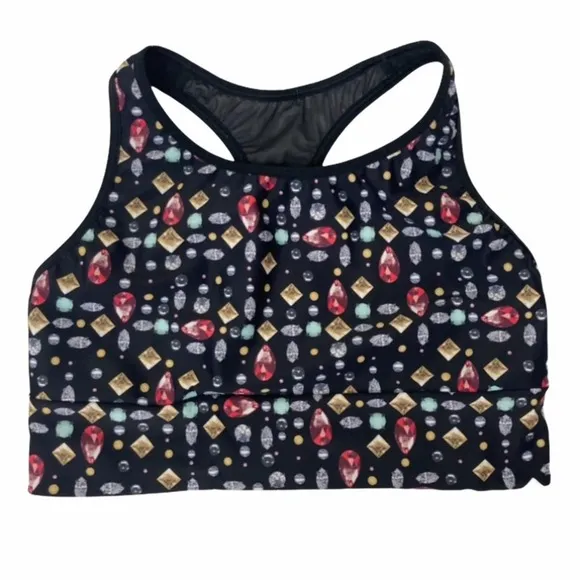 Victoria sport black gem print sports bra No size tag but fits like a small Pit to pit 13” Length... Show more