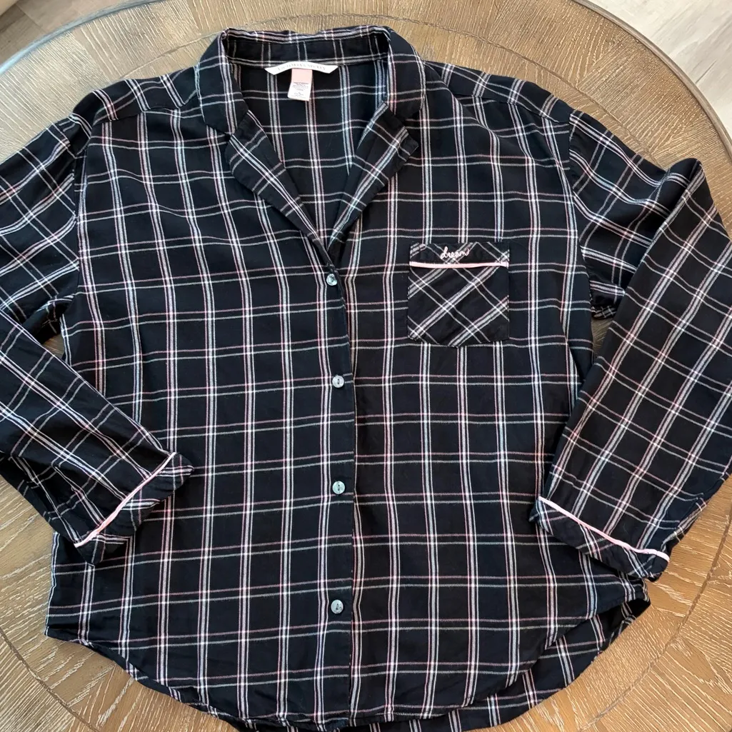 Victoria's Secret The Dreamer Flannel Black and Pink Plaid Sleep Shirt. Size Medium. “dreams” embroi... Show more