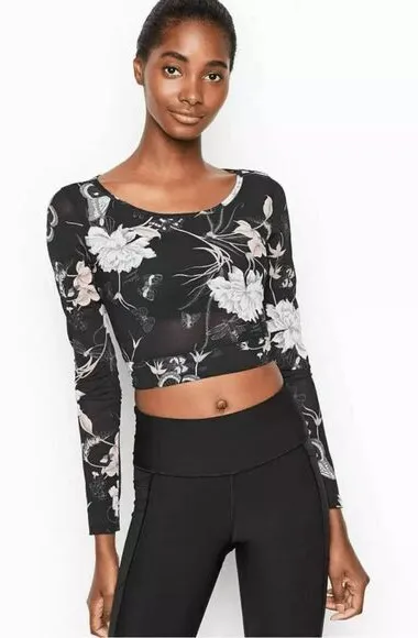 Beautiful Victoria's Secret long sleeve crop top featuring an elegant floral print pattern on a blac... Show more