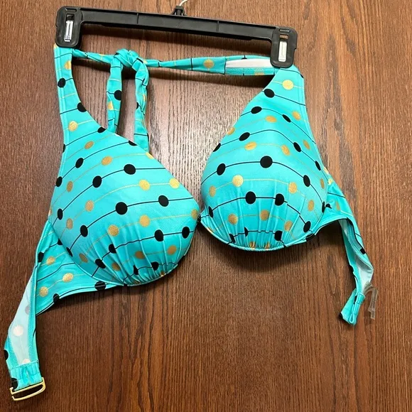 Turquoise bikini top with black and gold polka dots Victoria’s Secret Size undefined - $25 - From Maiti
