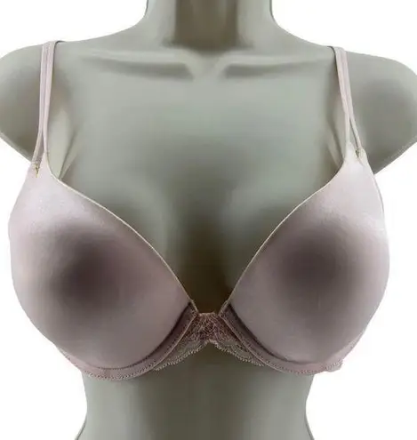 -Smooth Pink Cups -Lace Wings -Gold Tone Accents -Rear Closure -Push Up Padding -Underwire -Polyamid... Show more