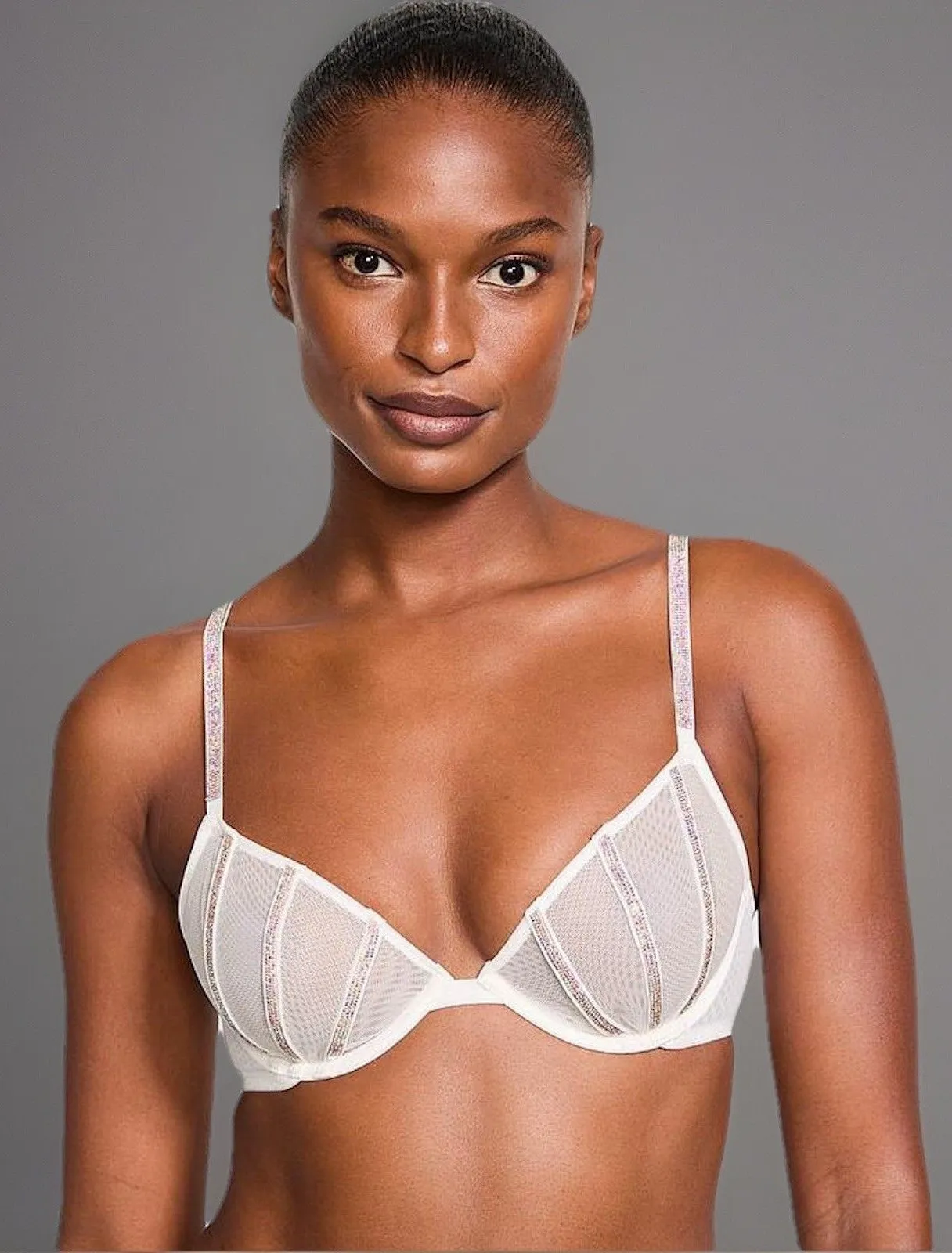 VERY SEXY Sheer Shine Low-Cut Demi Bra Coconut White Size 32D New With Tags Turn heads with thi... Show more