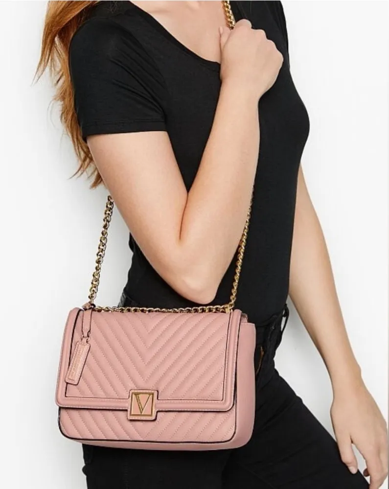 This elegant pink quilted shoulder bag is perfect for any occasion. Its stylish design and versatile... Show more