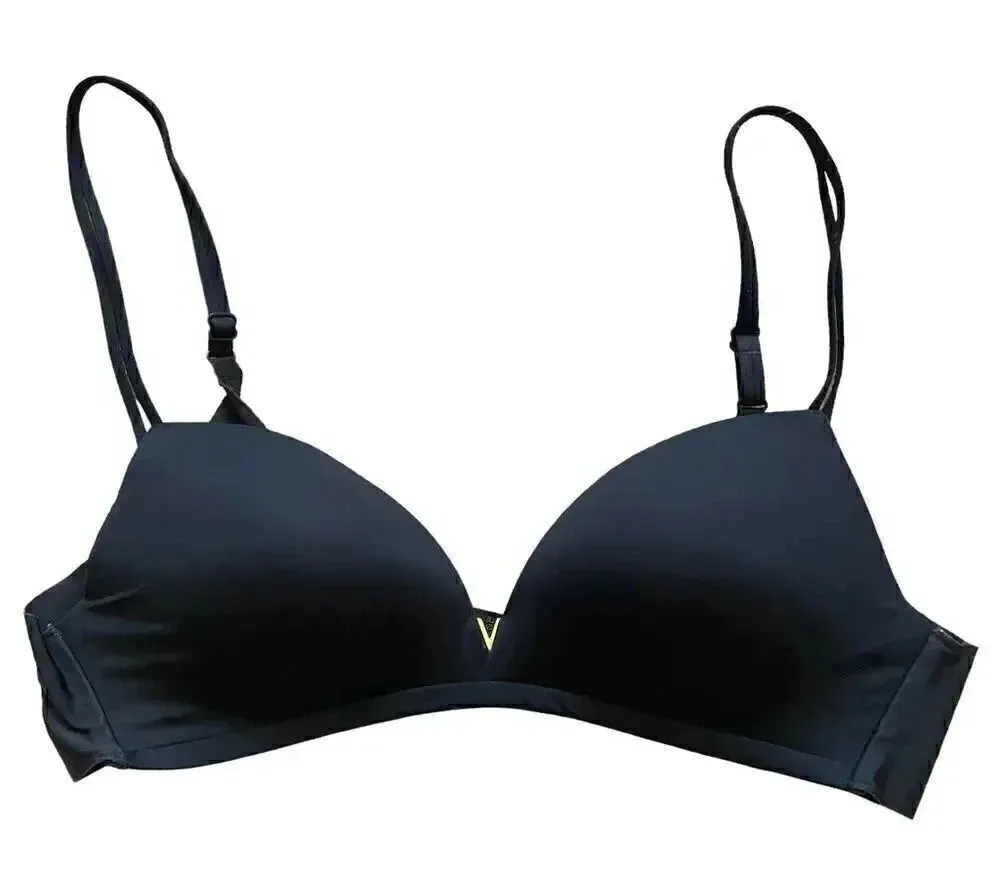 Victoria Secret Black Paded No Wire Adjustable Straps Gold V Detail On Ftont Bra SZ 34B Preowned exe... Show more