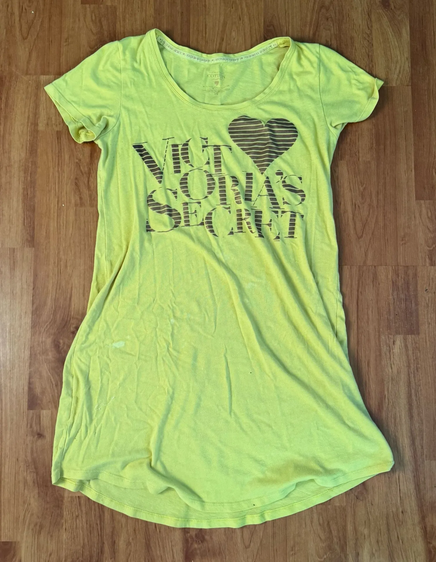 - Y2K Yellow Cotton Jersey Nightgown With a Scoop Neck, Short Sleeves, Relaxed Mini fit, rounded hem & Victoria’s Secret Spellout at the chest