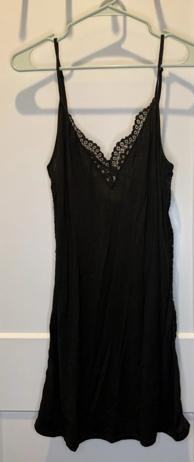The Victoria's Secret Soft Modal Lace Trim Mini Slip Sleep Dress in black, size large, is a stylish... Show more