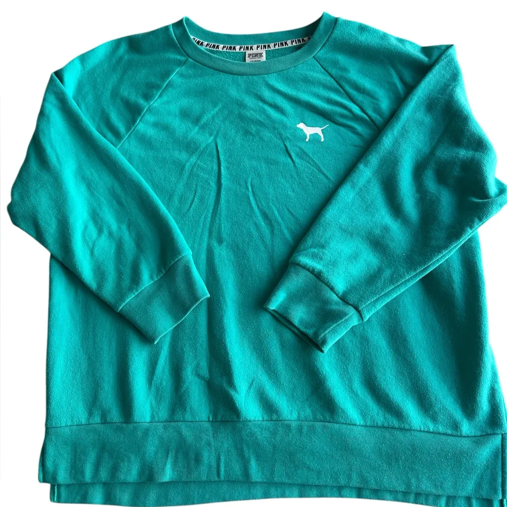 Victoria Secret Womens Teal Sweatshirt Fleece Pullover Wash Dog Logo Large Blue - $25 - From michelle