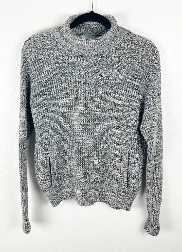 VICTORIA’S SECRET 100% Cotton Gray Marled Kangaroo Pocket Turtleneck Sweater. Gently worn pre-owned... Show more
