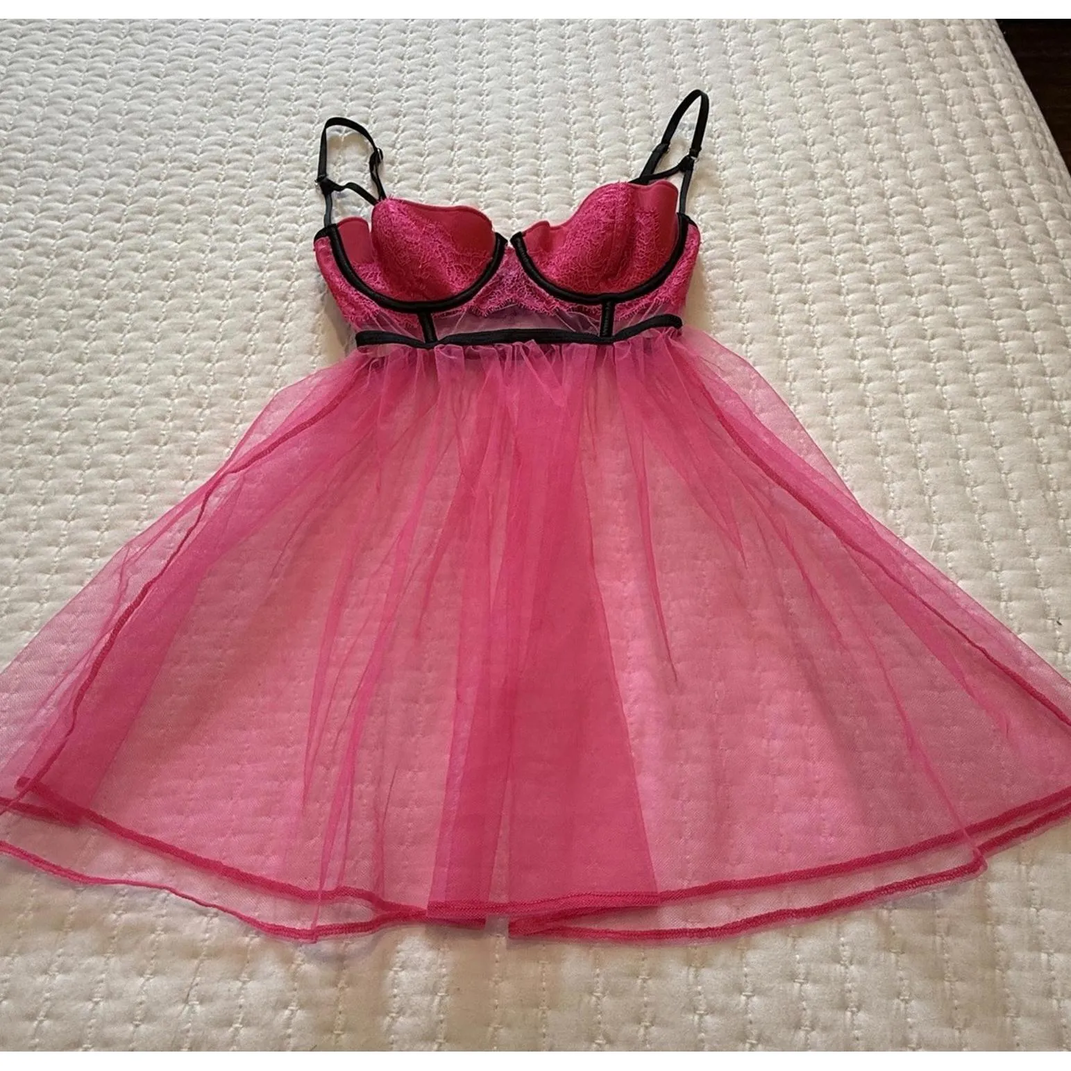This is in excellent condition. Lined bust, sheer babydoll layer. Underwire bust. Please make sure... Show more