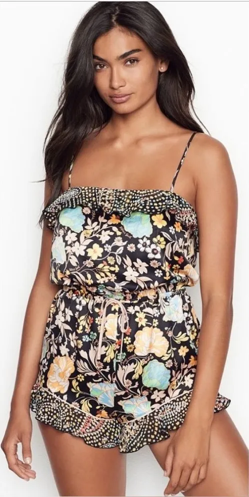 Victoria’s Secret Black Floral Romper Adjustable Spaghetti Straps & Waist Sz S - $18 - From Flor