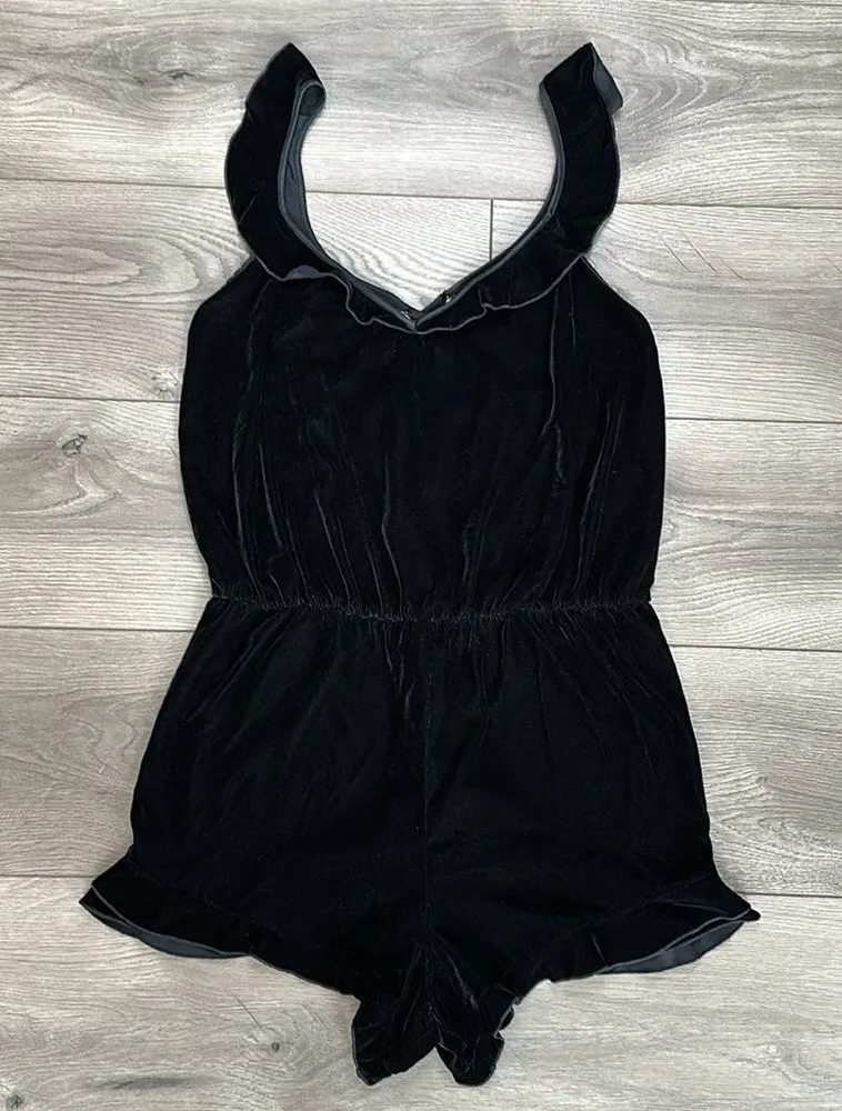 Victoria’s Secret Black Velvet Romper Size Large. Great condition! 100% polyester. Stretch elastic a... Show more