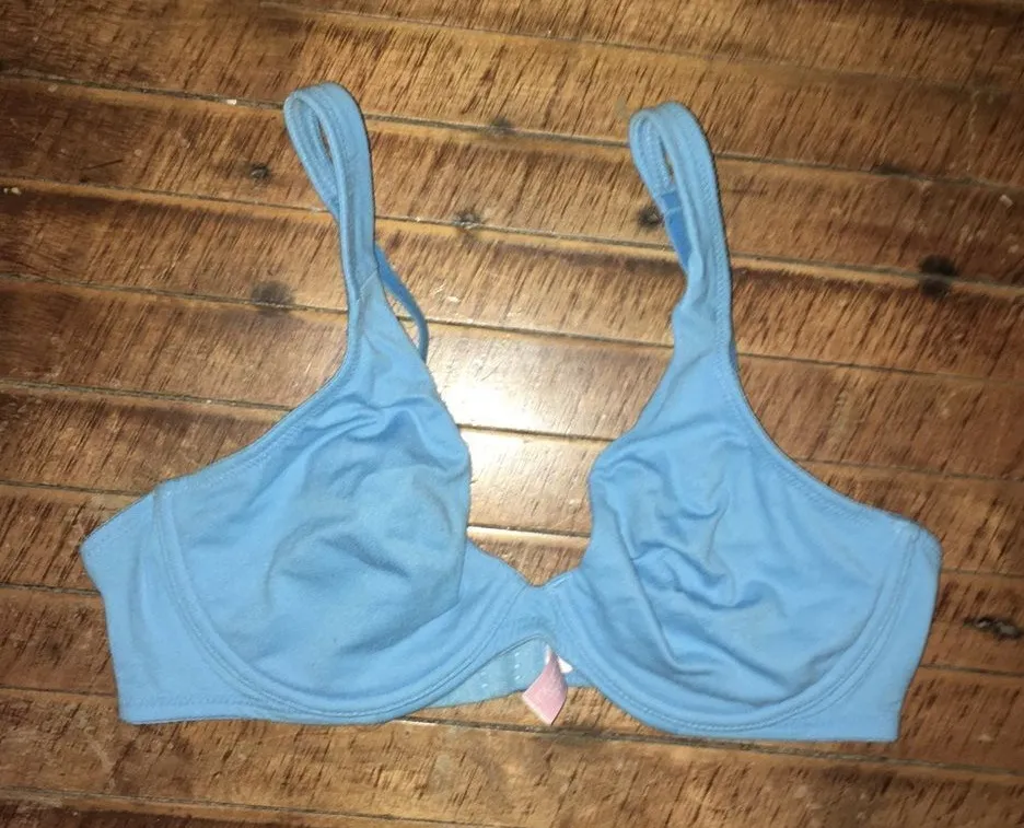 Victoria’s Secret blue, soft jersey knit bra with underwire. In good, used condition. From a pet and... Show more