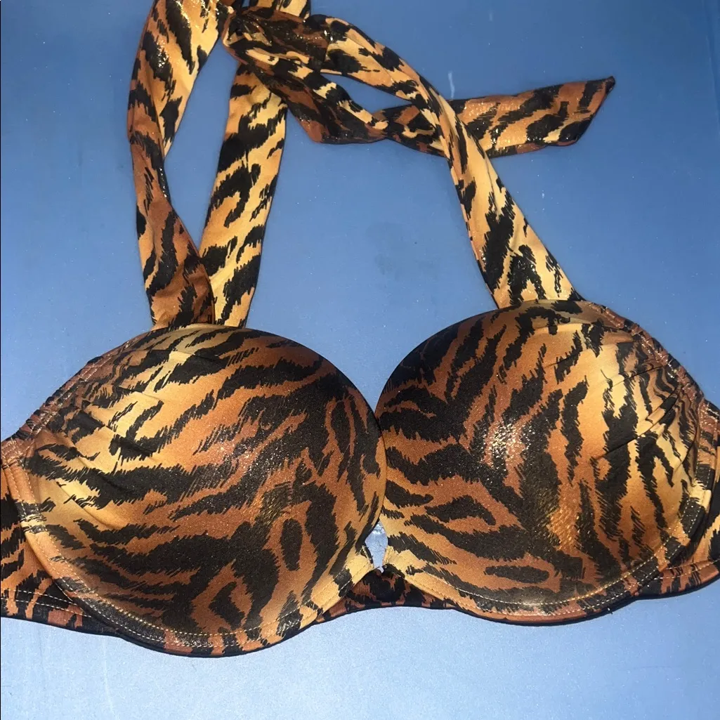 Victoria’s Secret Bombshell Animal Print Tiger Halter Bikini Top adds 2 cups 34B Orange Size undefined - $75 - From Shoptillyoudrop