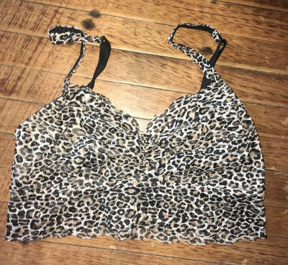 Victoria’s Secret cheetah print, gathered front bralette. Comfortable to lounge in. From a pet and s... Show more