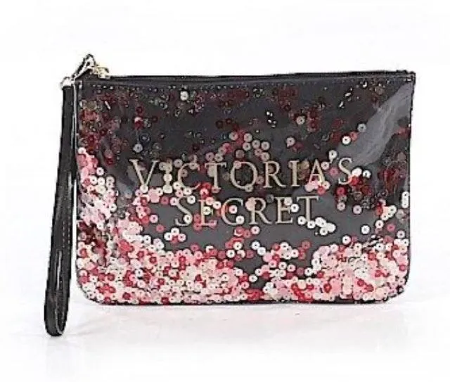 NWOT! Black Victoria’s Secret vinyl wristlet with front gold printed logo and sequin confetti featur... Show more