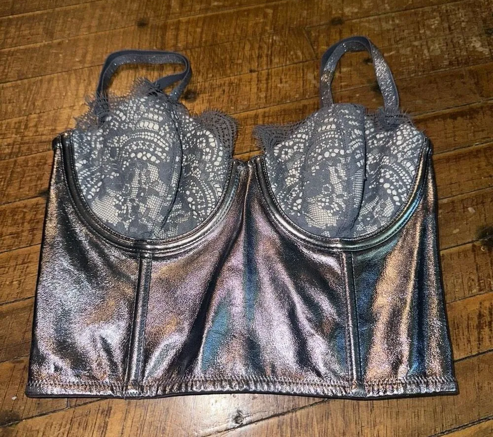 Victoria’s Secret Dream angels, metallic, gray, Lacy, edgy, 32C corset bra. In good, used condition.... Show more