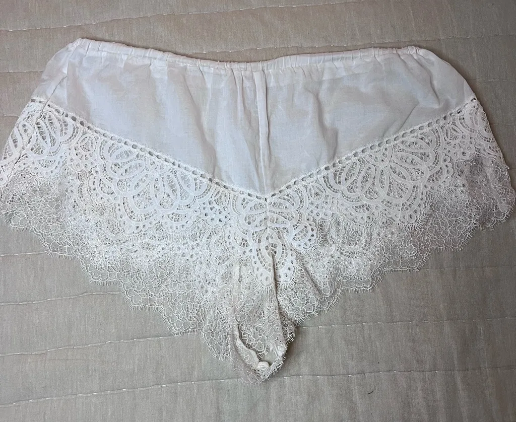 Experience comfort and style with these elegant white lace sleep shorts. Perfect for a cozy night's... Show more