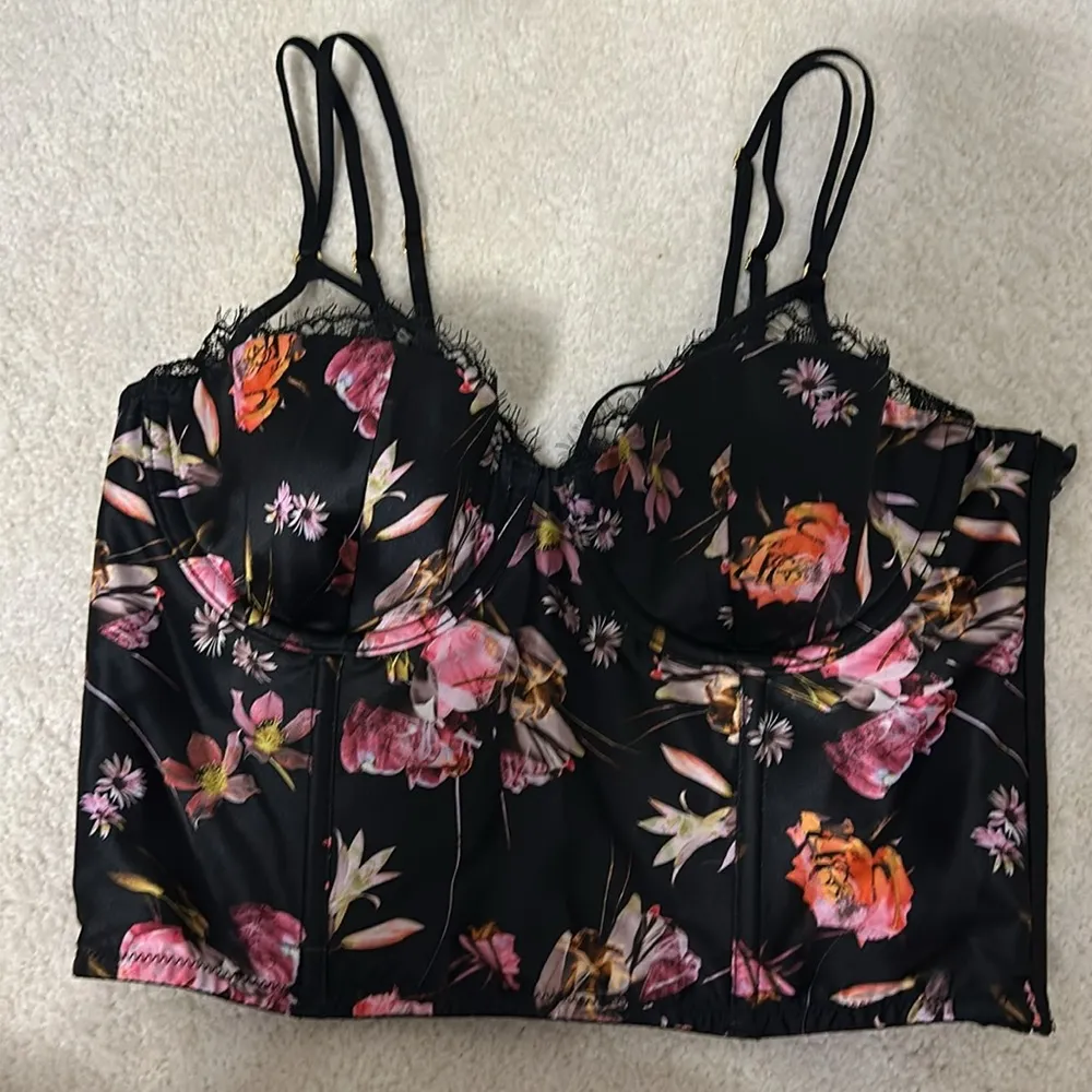 Both new with tags Wide leg palazzo pants 32” pant inseam Size XS pant Size 32C Bustier Lace tr... Show more