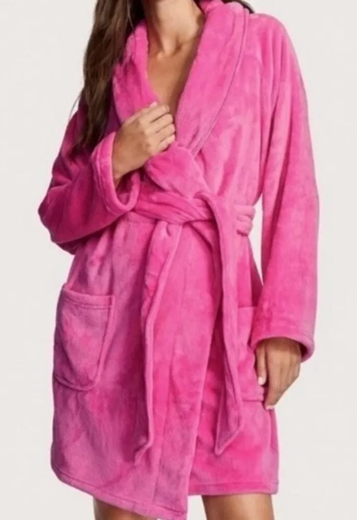 VICTORIA’S SECRET Fluffy Pink Plush Fleece VS Crest Front Tie Robe Size L Victoria’s Secret ~ VS C... Show more